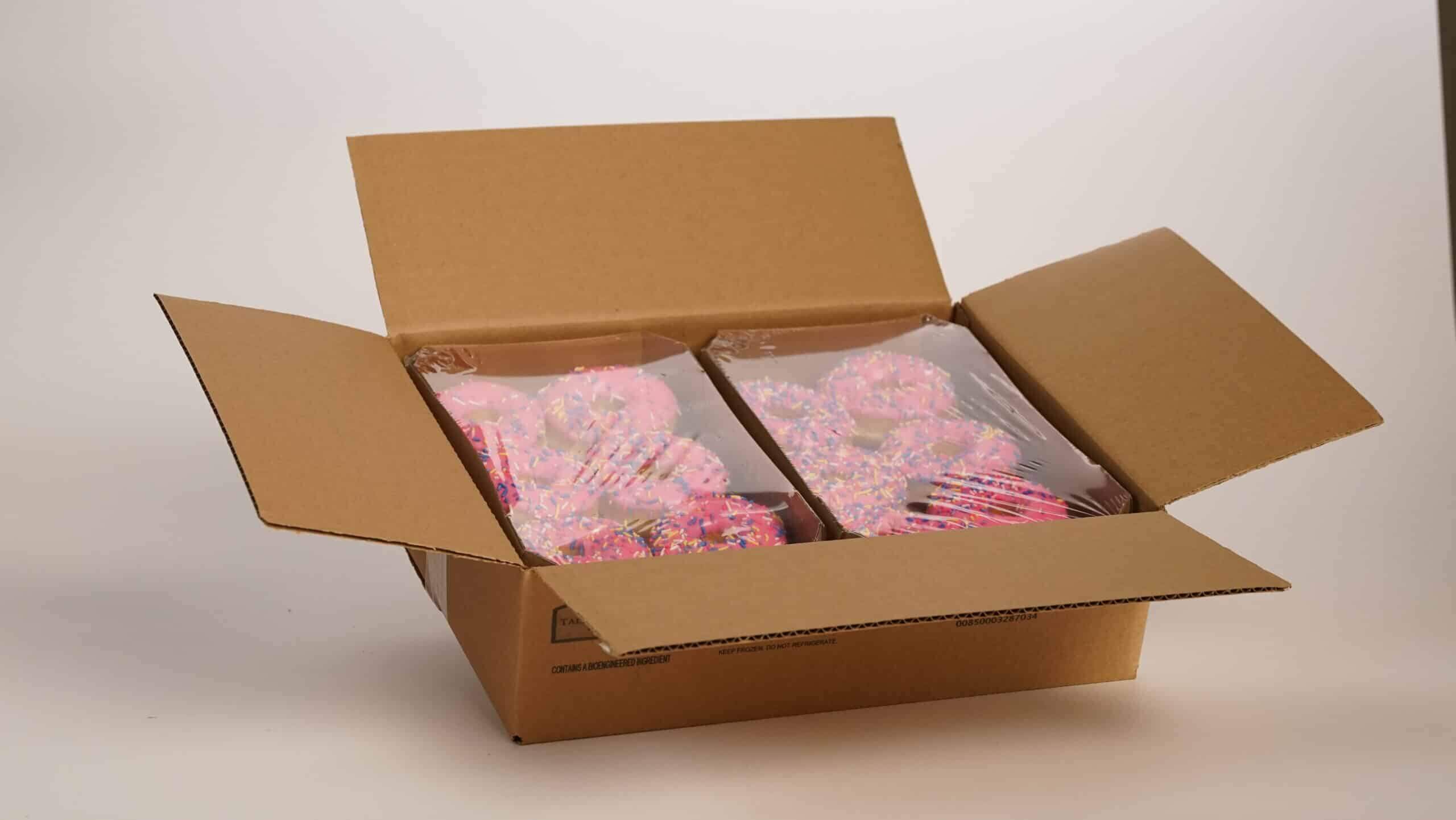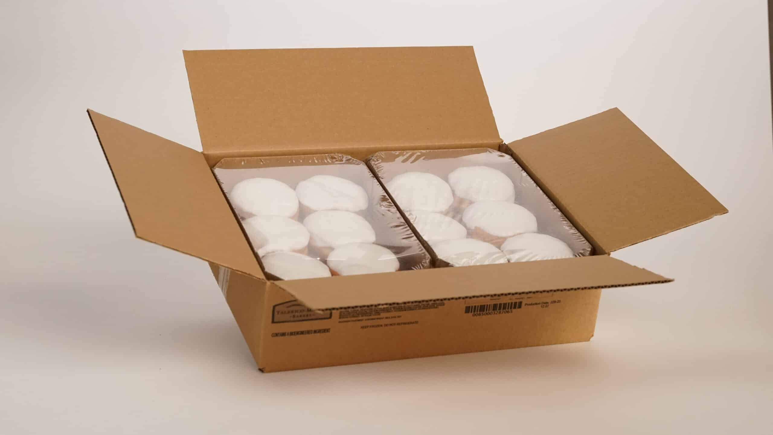 PET CUP AND DOMED LID, SECURED BY PVC SHRINK FILM SEAL AND ADHESIVE LABEL BAND. CORRUGATED MASTER CASE. 15 CUPS PER CASE. -