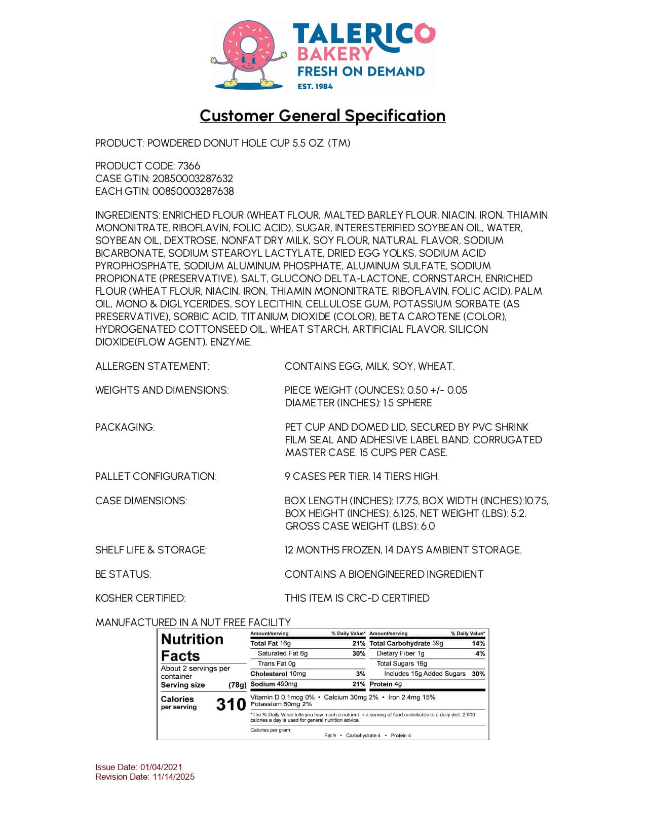 CONTAINS A BIOENGINEERED INGREDIENT MANUFACTURED IN A NUT FREE FACILITY -